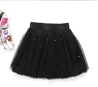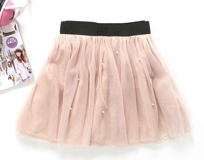 Description: Mesh skirt with pearls scattered all over. Suitable for S & M ladies